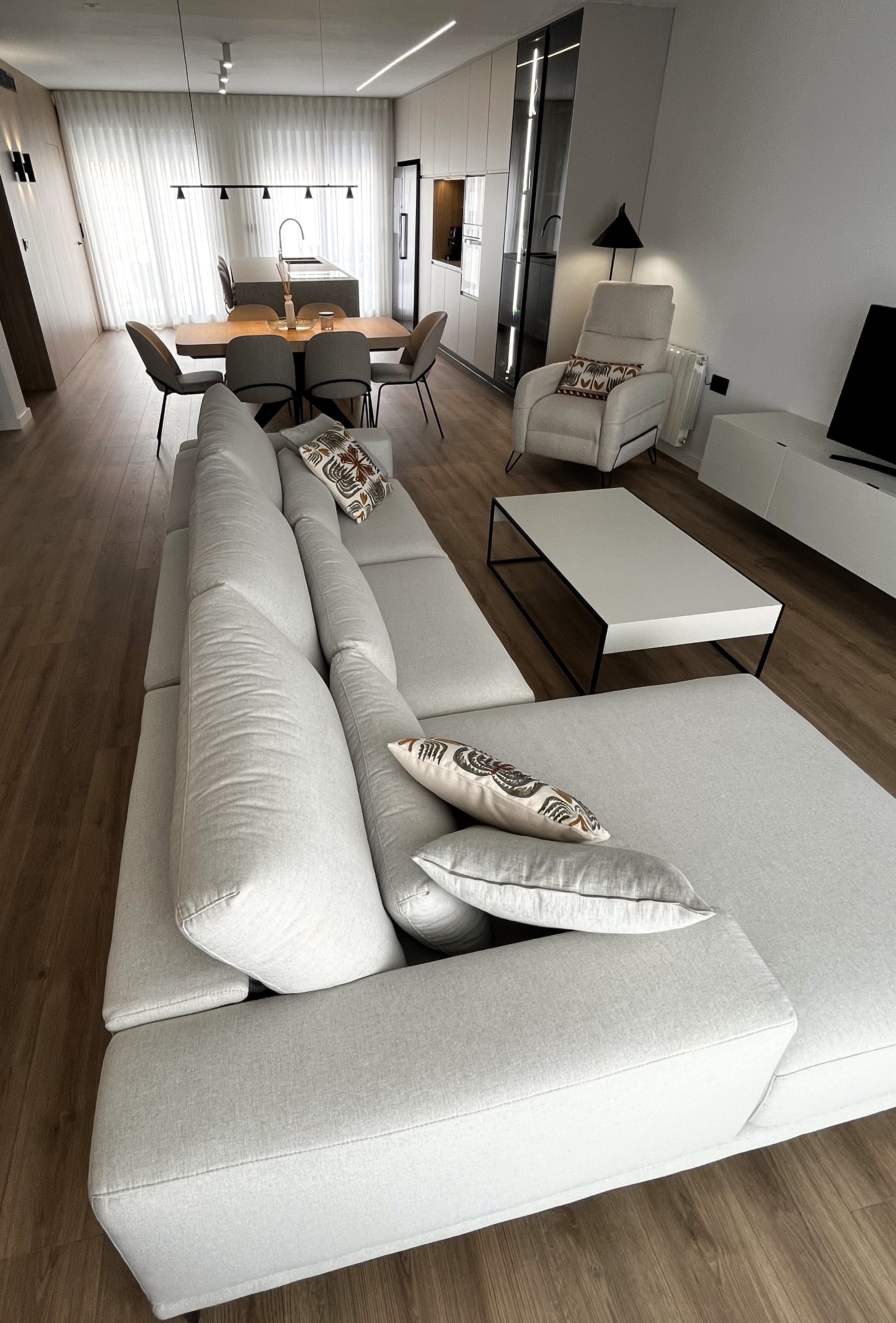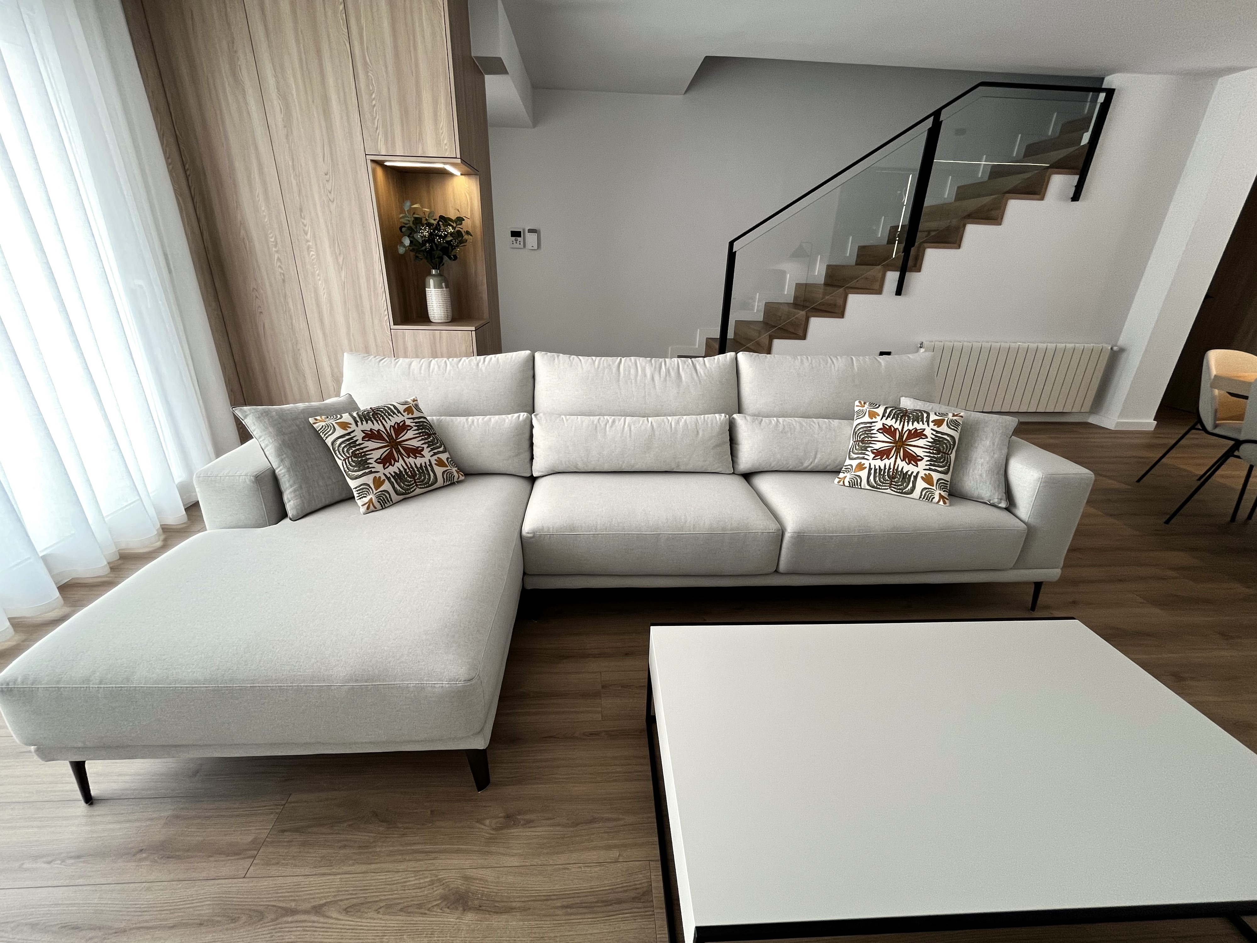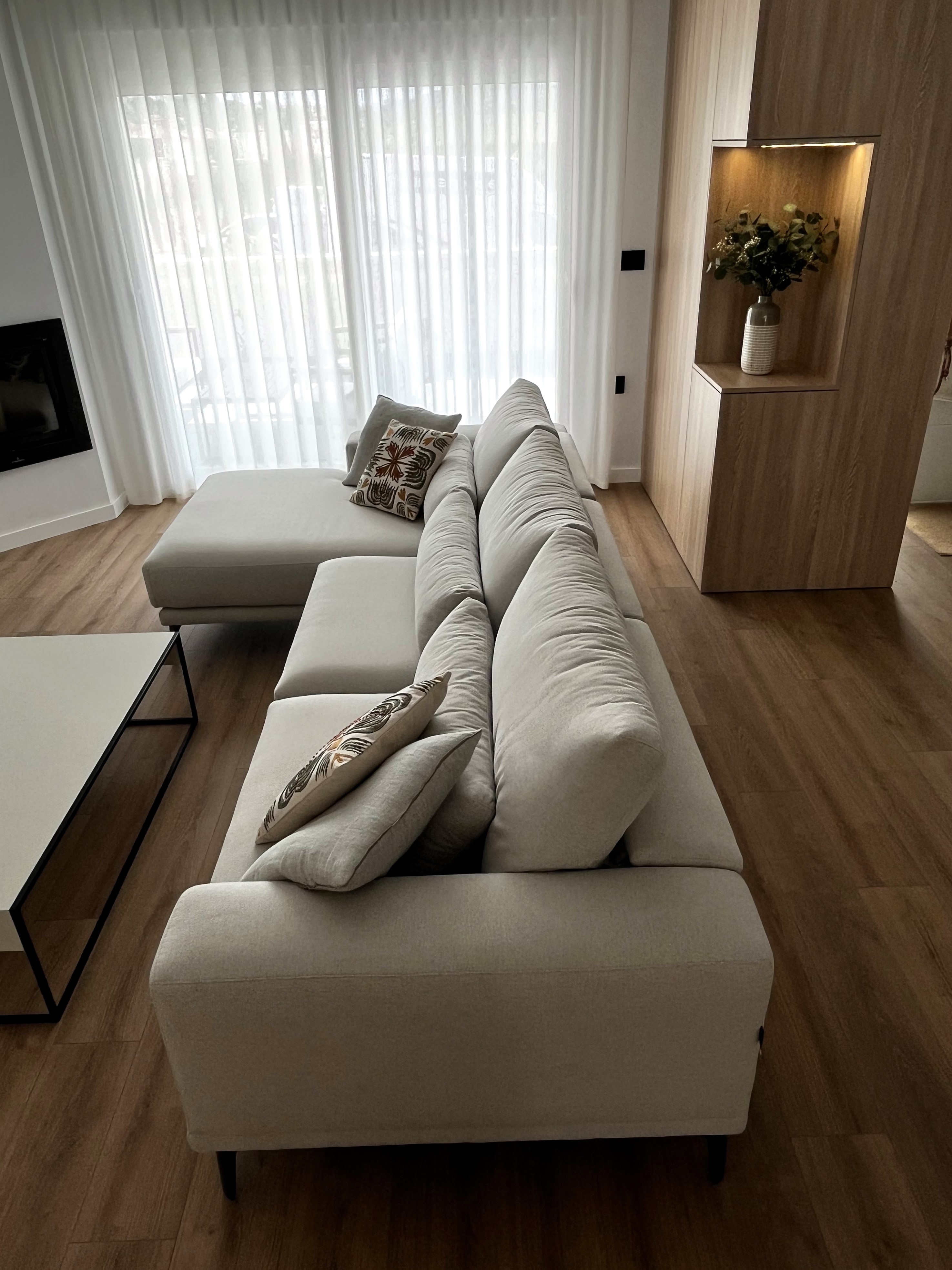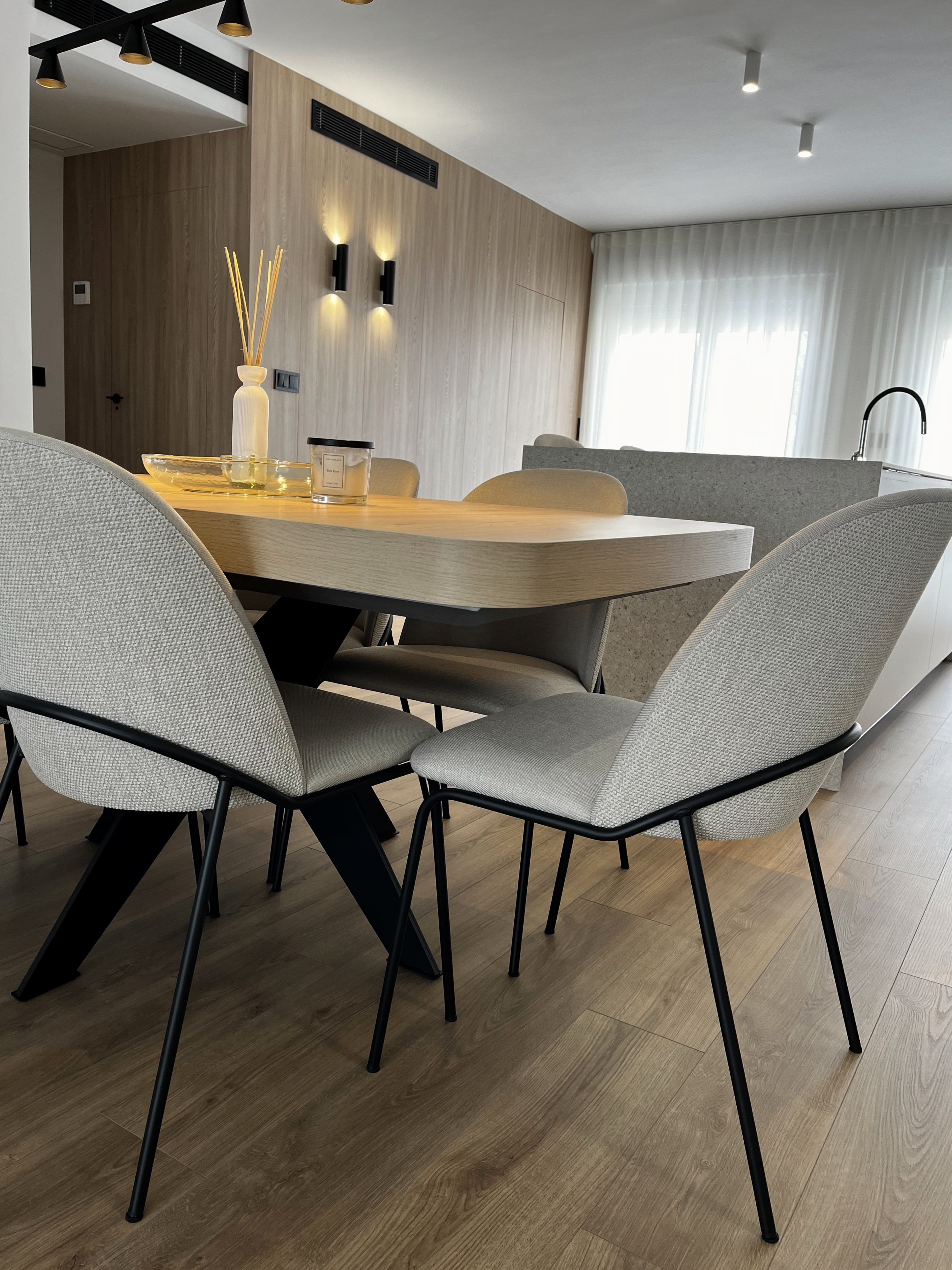 Se trata de una vivienda de nueva construcción, desde la fase inicial de obra, planos, elección de materiales, equipamiento integral hasta el textil y la decoracion final. Cada espacio fue diseñado como parte de un todo, buscando siempre la comodidad, la funcionalidad y una estética atemporal. Convertir un vivienda en el hogar con el que había soñado sus propietarios, fue la mayor recompensa