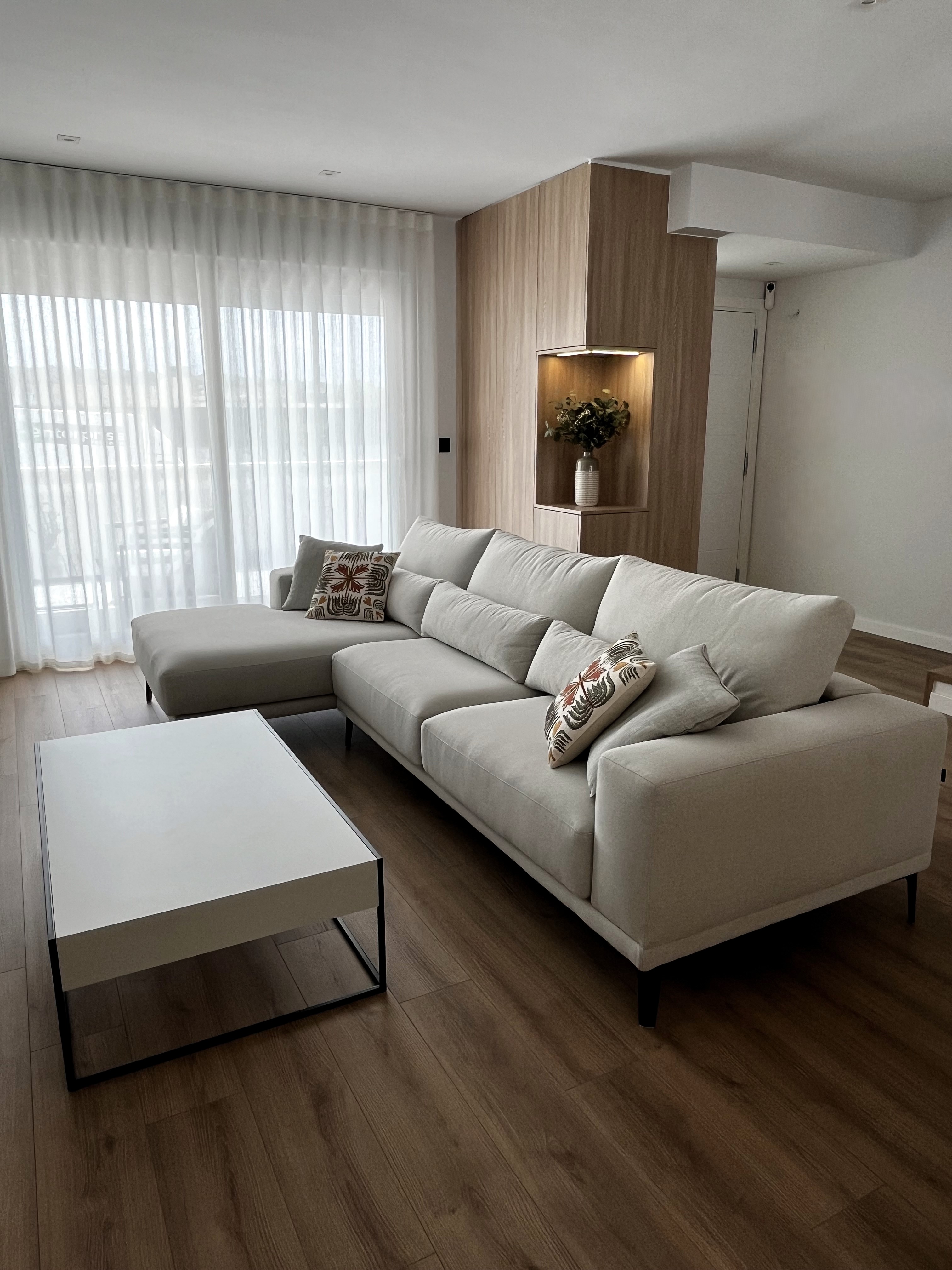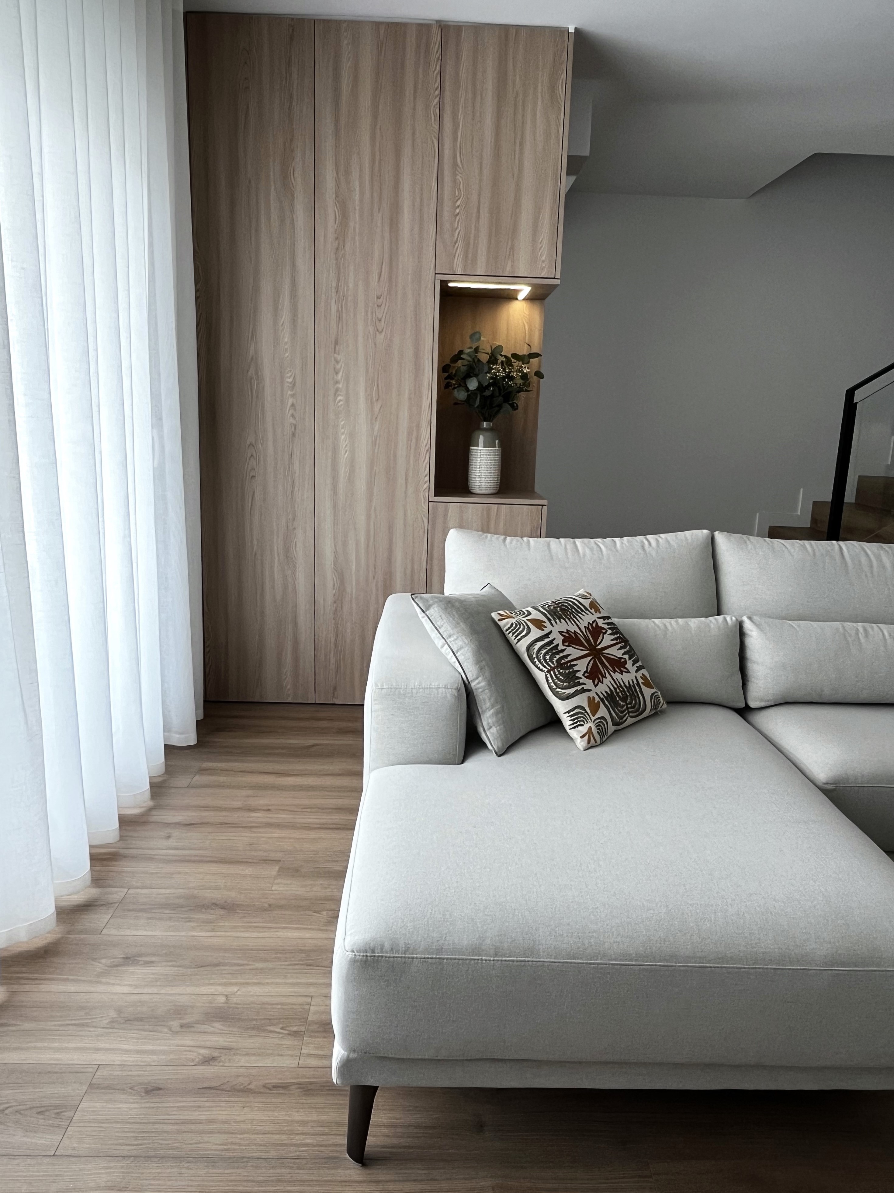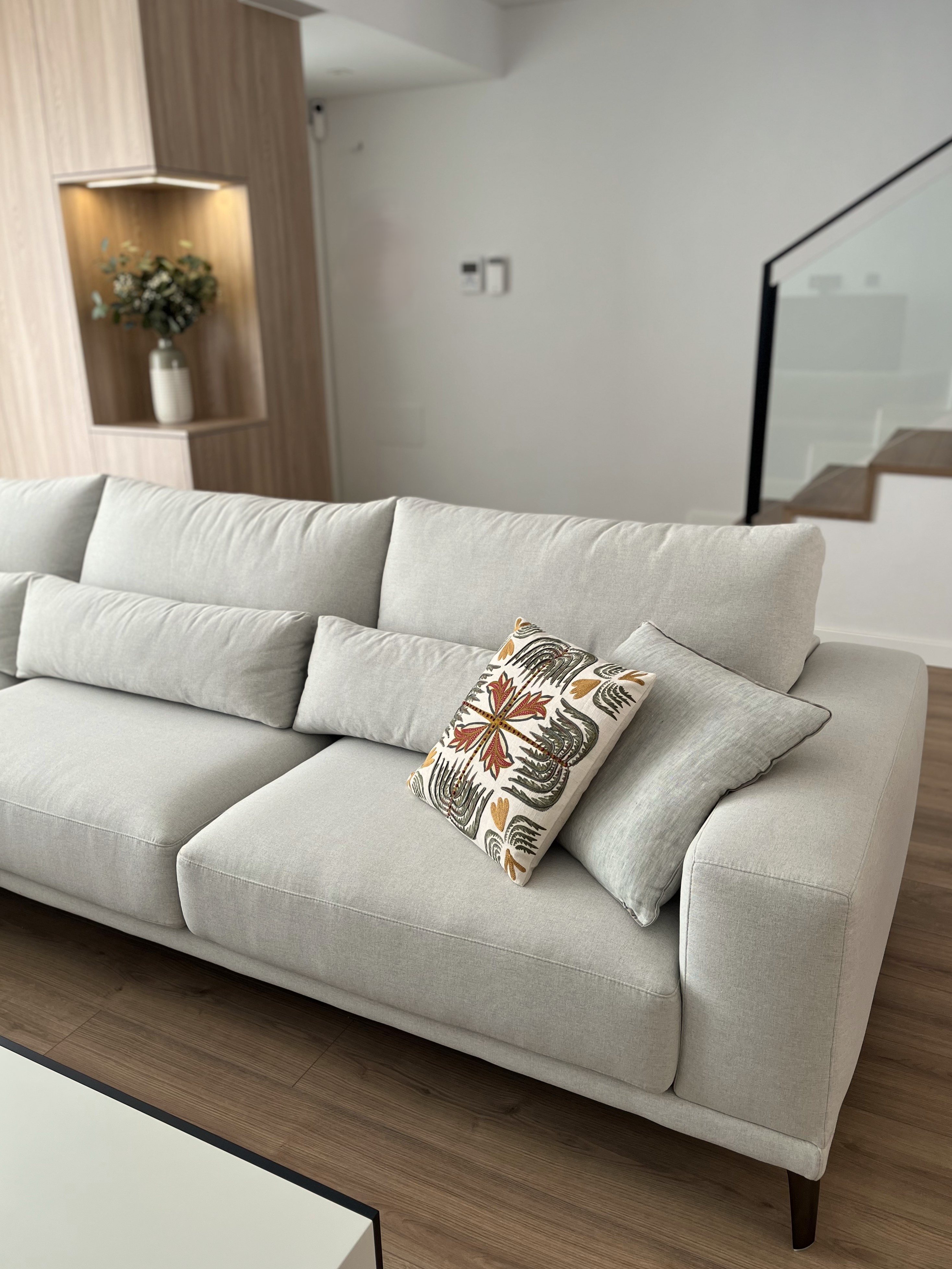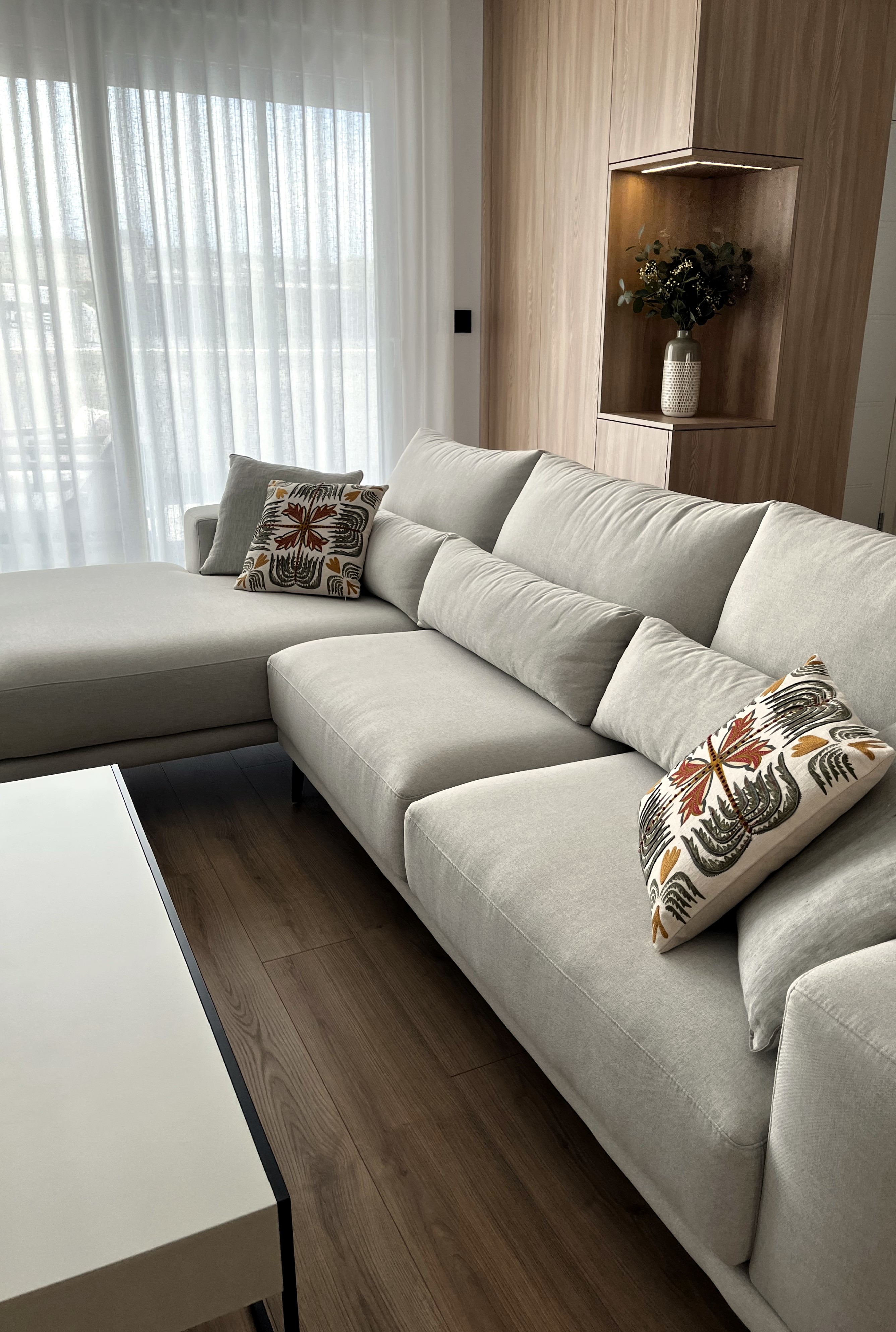 Se trata de una vivienda de nueva construcción, desde la fase inicial de obra, planos, elección de materiales, equipamiento integral hasta el textil y la decoracion final. Cada espacio fue diseñado como parte de un todo, buscando siempre la comodidad, la funcionalidad y una estética atemporal. Convertir un vivienda en el hogar con el que había soñado sus propietarios, fue la mayor recompensa