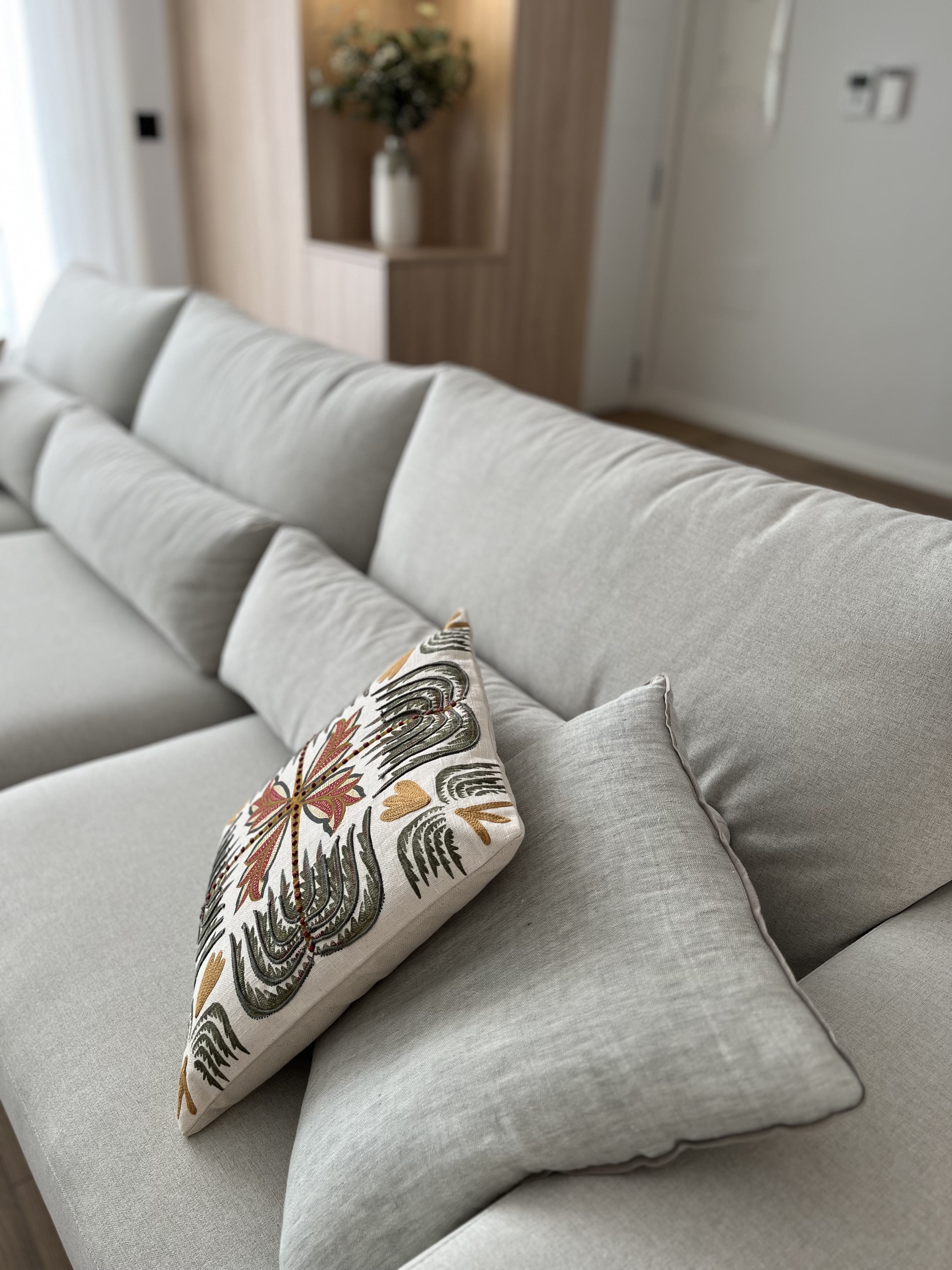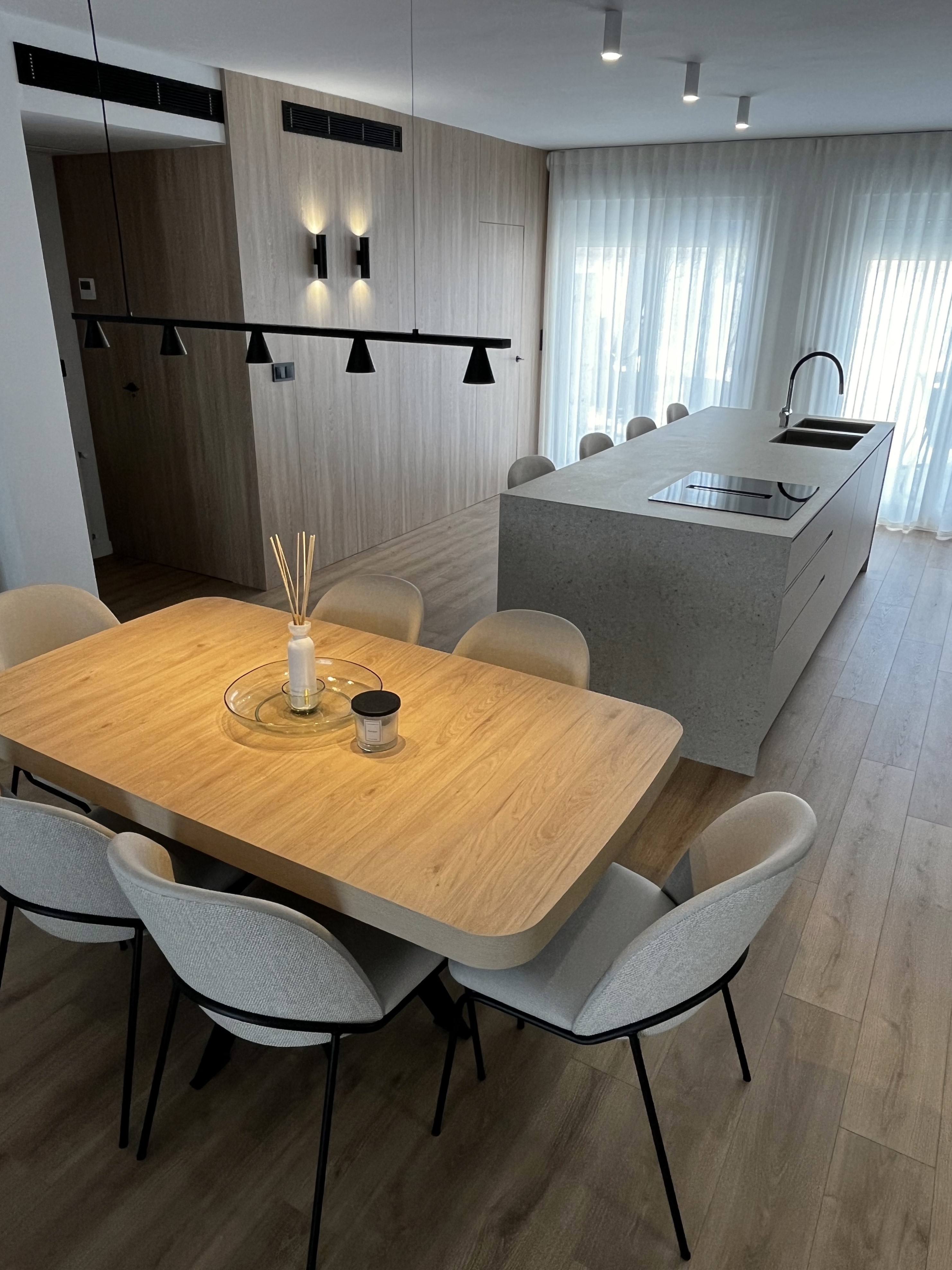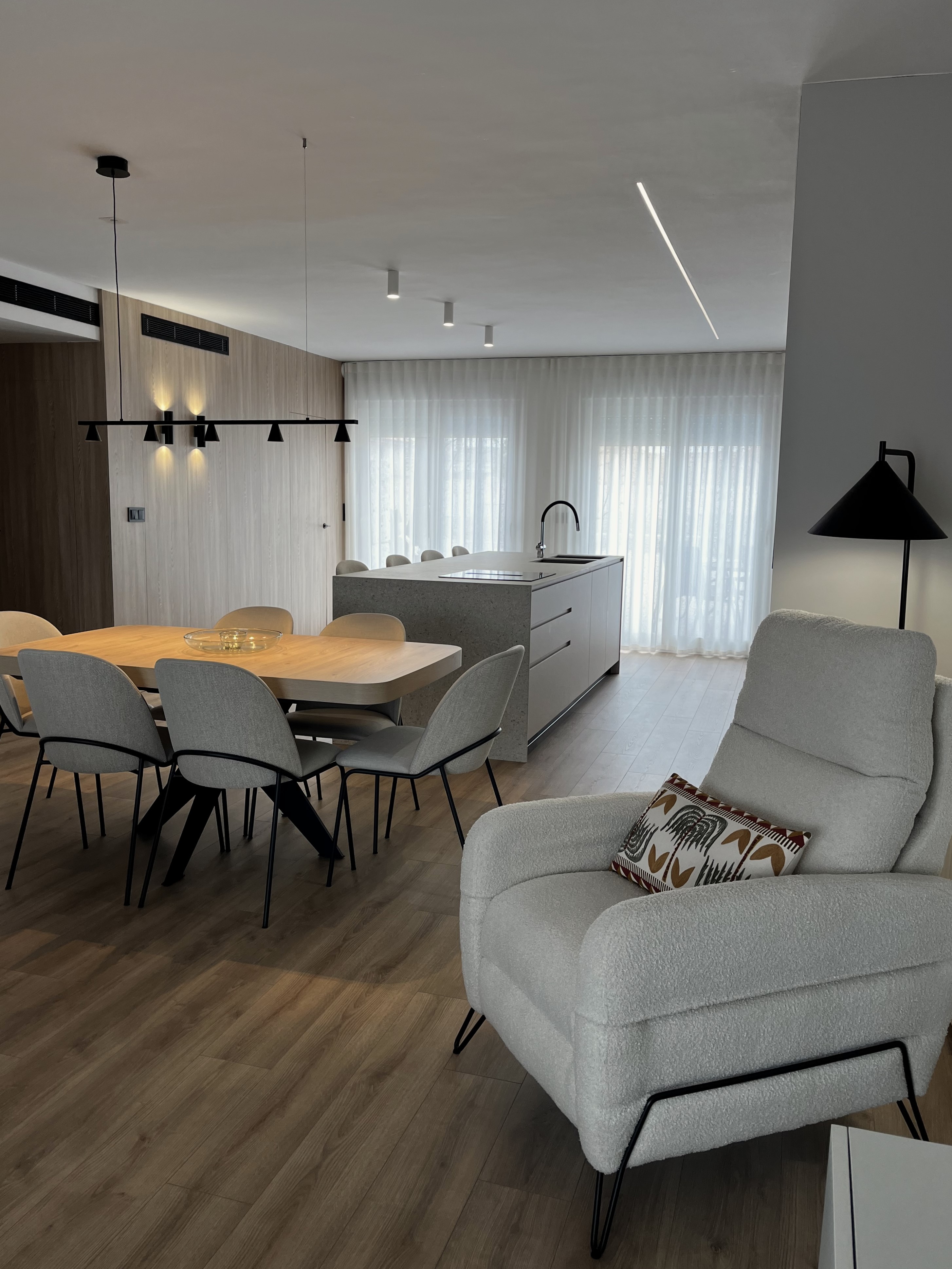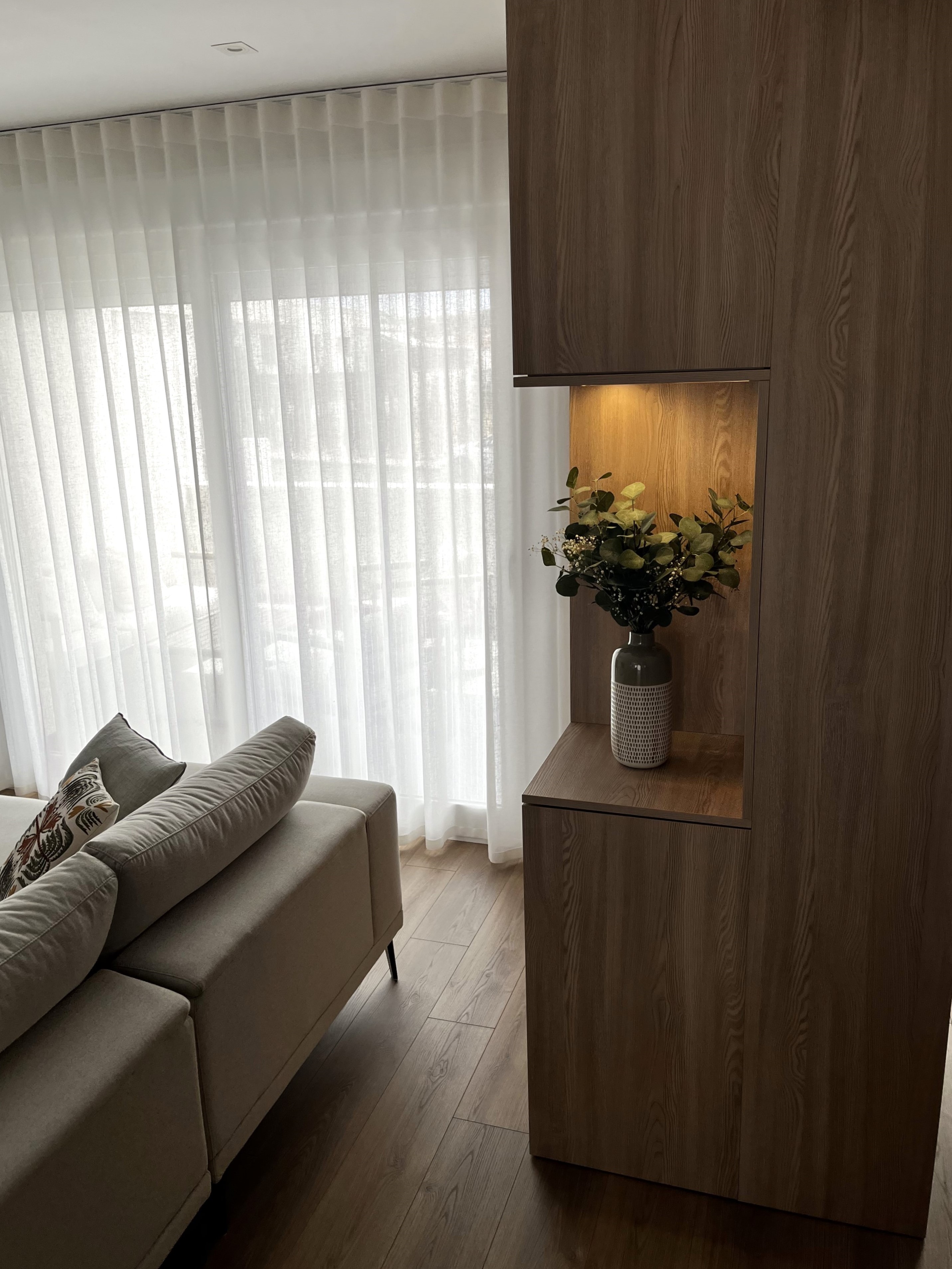 Se trata de una vivienda de nueva construcción, desde la fase inicial de obra, planos, elección de materiales, equipamiento integral hasta el textil y la decoracion final. Cada espacio fue diseñado como parte de un todo, buscando siempre la comodidad, la funcionalidad y una estética atemporal. Convertir un vivienda en el hogar con el que había soñado sus propietarios, fue la mayor recompensa