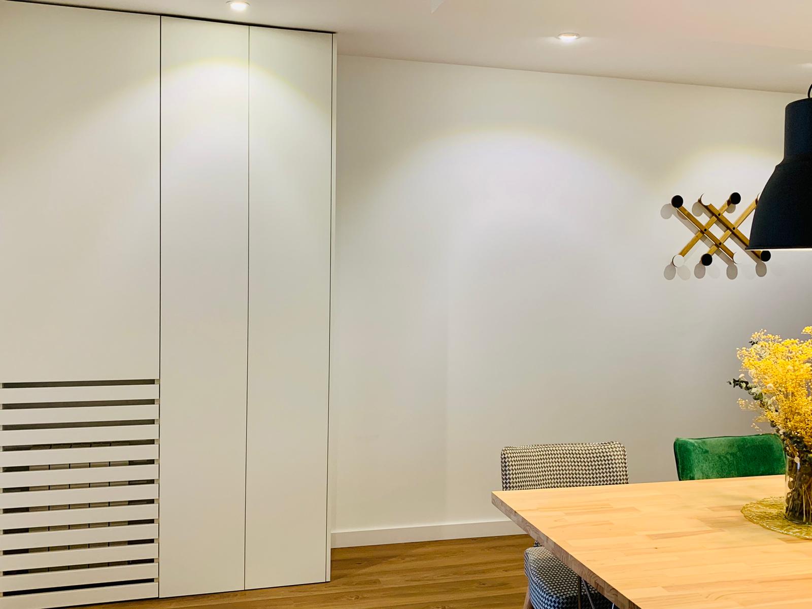 Nuria y Andrés necesitaban de nuestra ayuda para amueblar y decorar su vivienda y realizar el diseño y reforma del baño. Para el amueblamiento utilizamos mobiliario realizado a medida, de lineas muy sencillas, el toque diferenciador se lo dimos con las lamparas y deco. Fue un encanto trabajar con ellos , nos dejaron total libertad depositando toda su confianza en nosotros para lograr conseguir que su hogar reflejara su personalidad, convertirlo en un en un hogar confortable, actual pero con un estilo muy “suyo” .