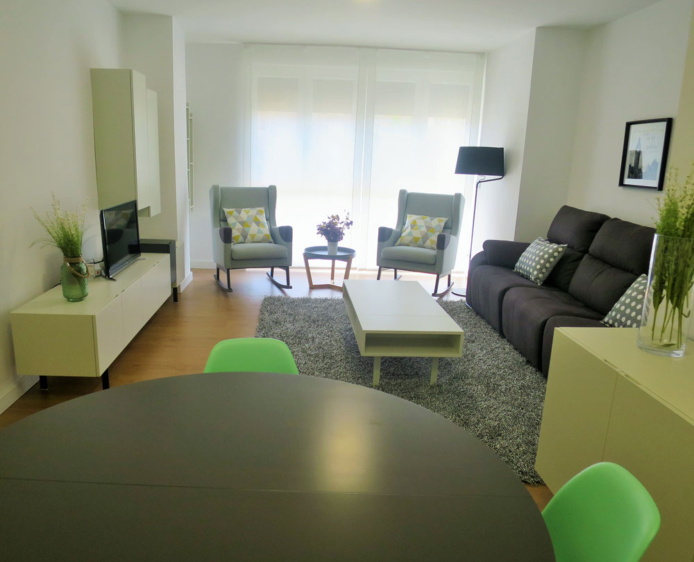 Consistió en amueblar y decorar una vivienda, práctica, actual y muy acogedora. Amueblamos y decoramos pensando en todas las necesidades de una vivienda para una pareja joven que comienza una nueva vida.